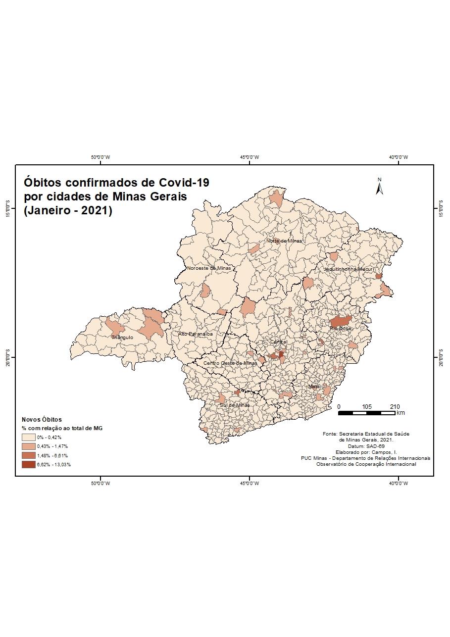 Óbitos confirmados de Covid-19 por cidades de Minas Gerais (Janeiro - 2021)