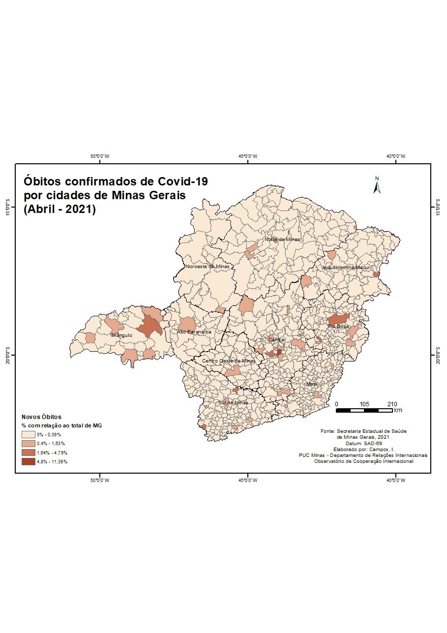 Óbitos confirmados de Covid-19 por cidades de Minas Gerais (Abril - 2021)
