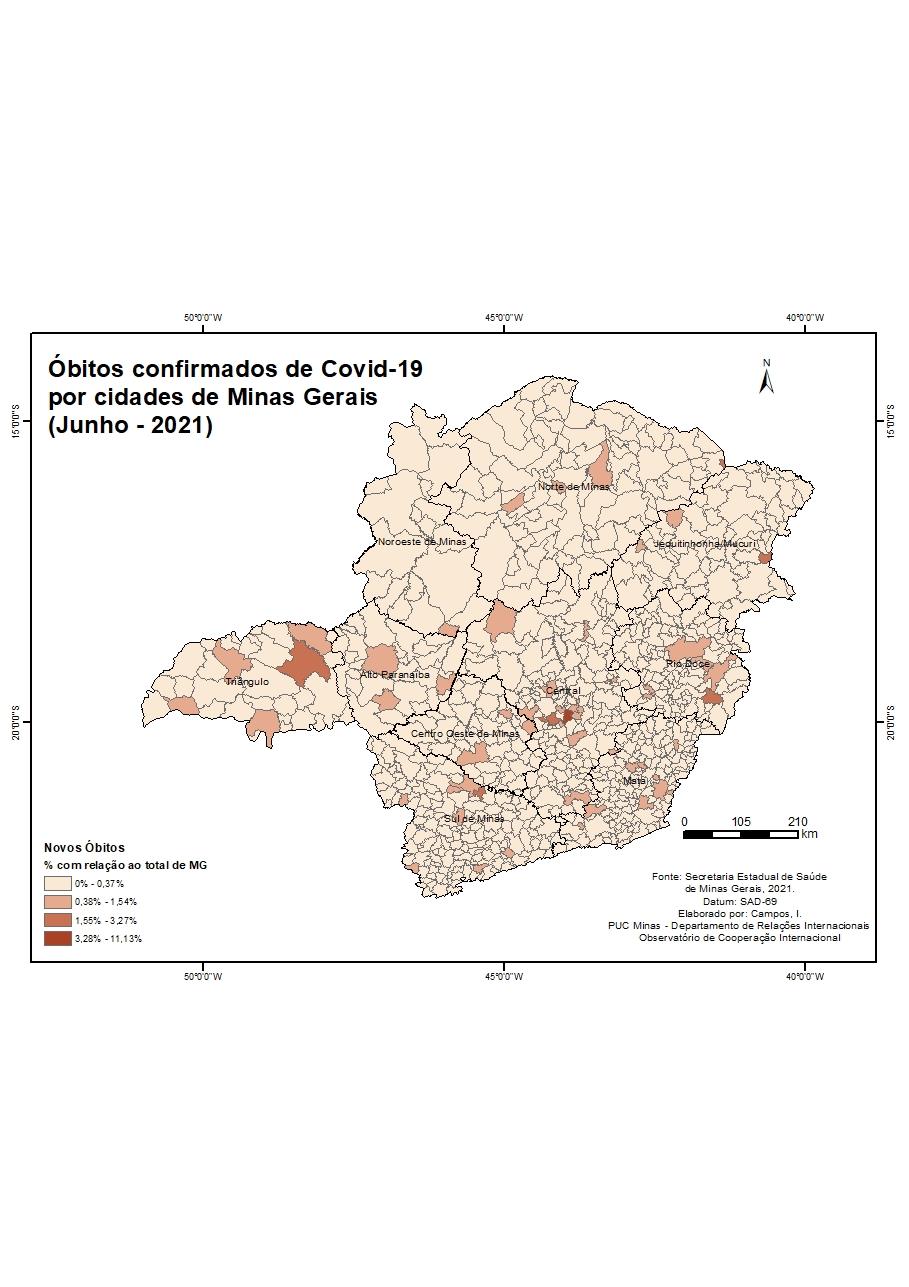 Óbitos confirmados de Covid-19 por cidades de Minas Gerais (Junho - 2021)