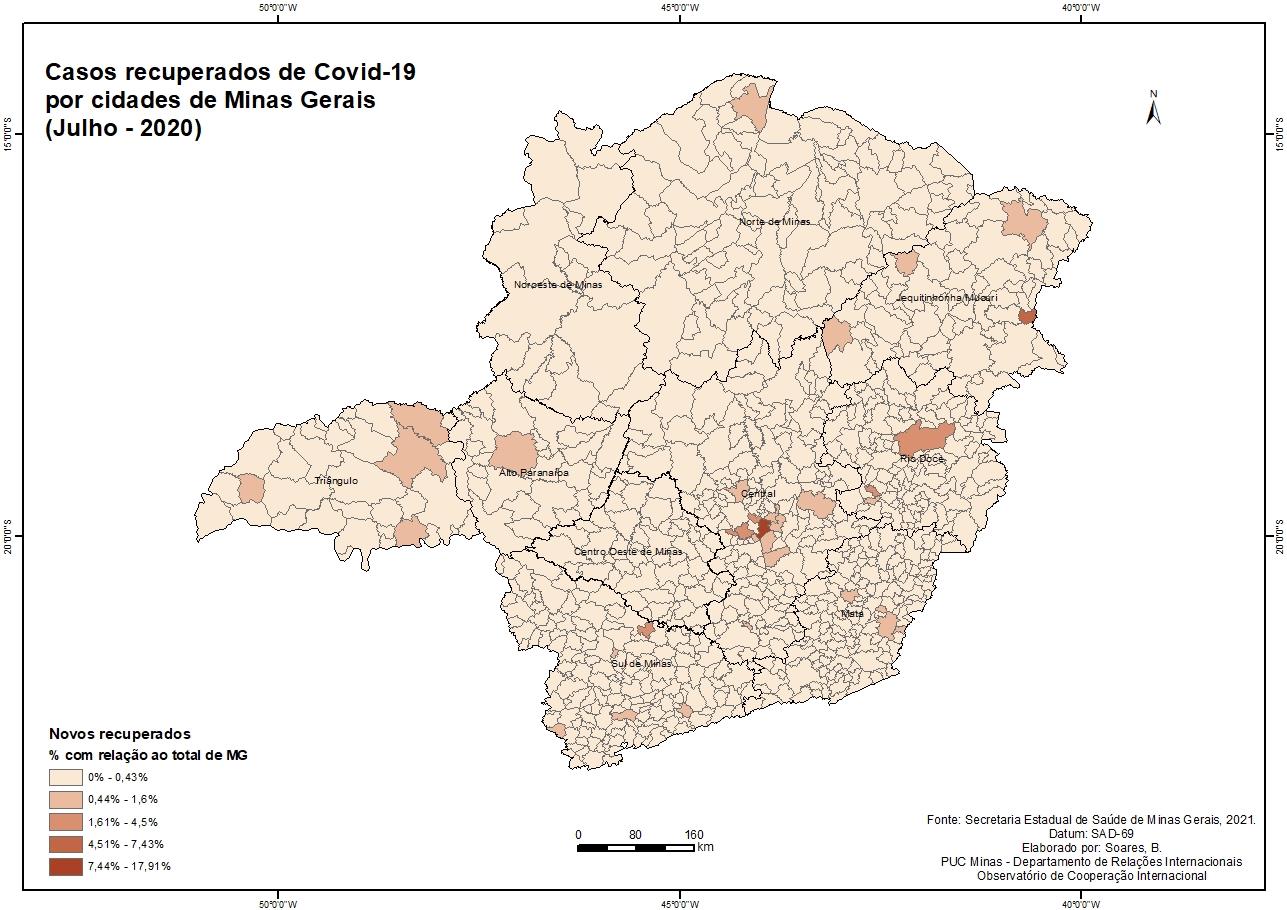 Casos recuperados de Covid-19 por cidades de Minas Gerais (Julho - 2020)