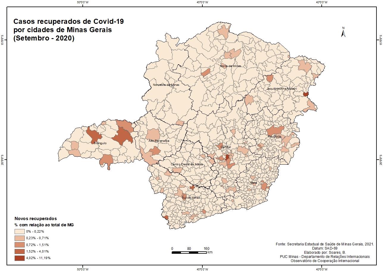 Casos recuperados de Covid-19 por cidades de Minas Gerais (Setembro - 2020)