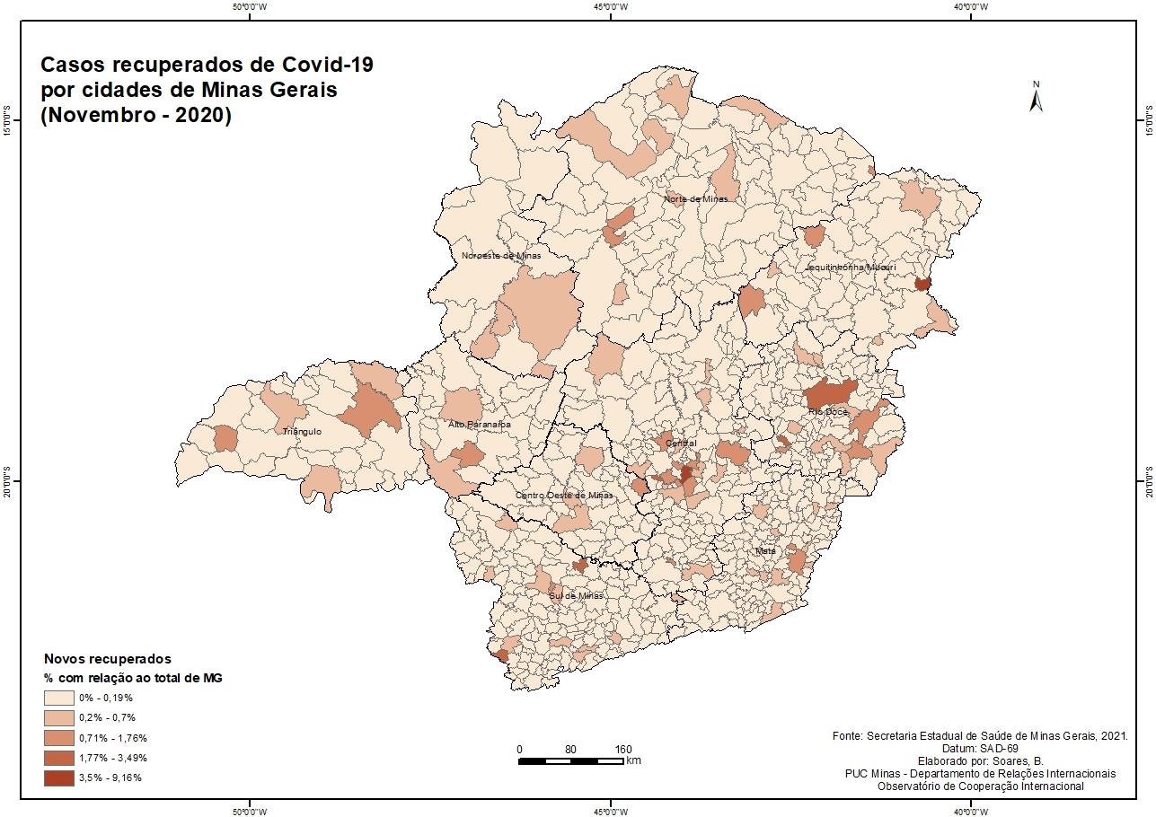 Casos recuperados de Covid-19 por cidades de Minas Gerais (Novembro - 2020)