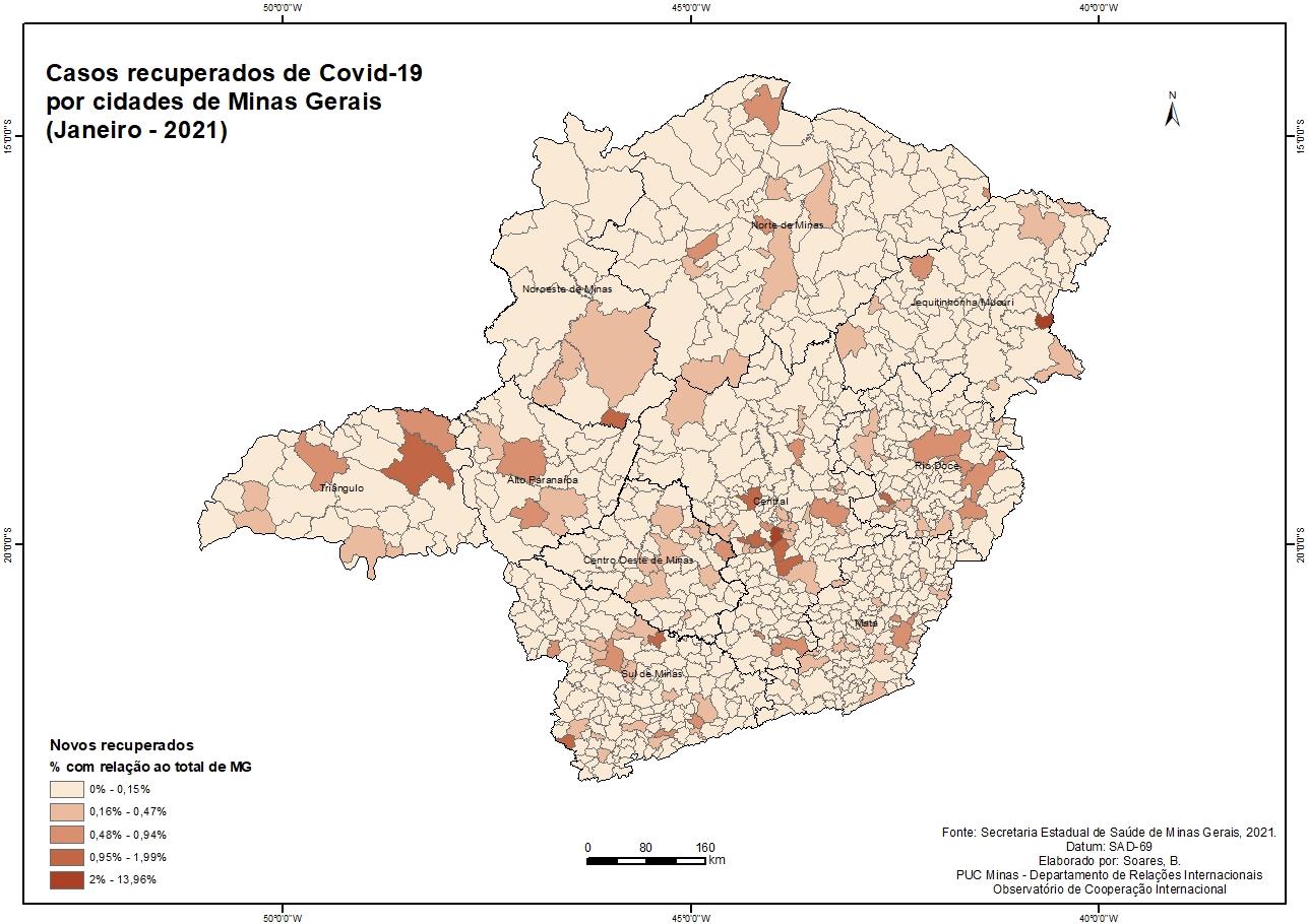 Casos recuperados de Covid-19 por cidades de Minas Gerais (Janeiro - 2021)