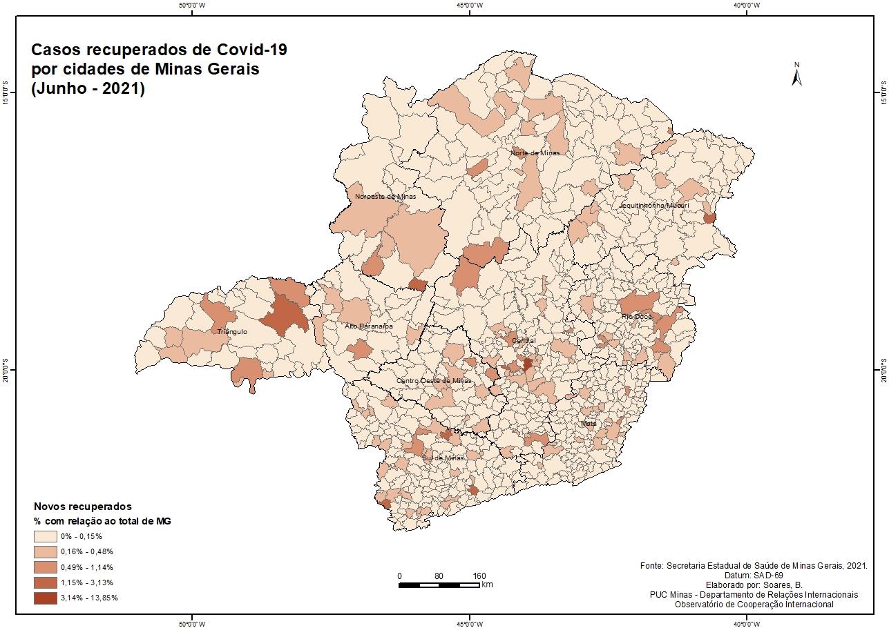 Casos recuperados de Covid-19 por cidades de Minas Gerais (Junho - 2021)