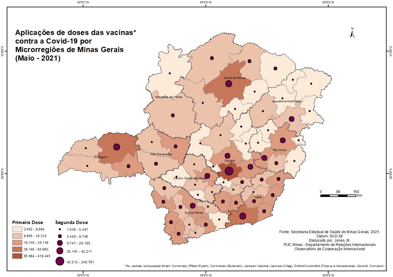 Aplicações de doses das vacinas contra a Covid-19 por Microrregiões de Minas Gerais (Maio - 2021)