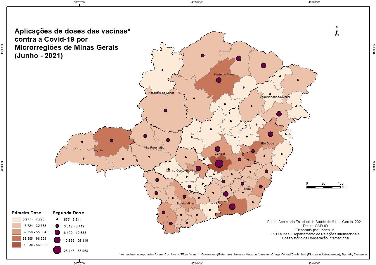 Aplicações de doses das vacinas contra a Covid-19 por Microrregiões de Minas Gerais (Junho - 2021)