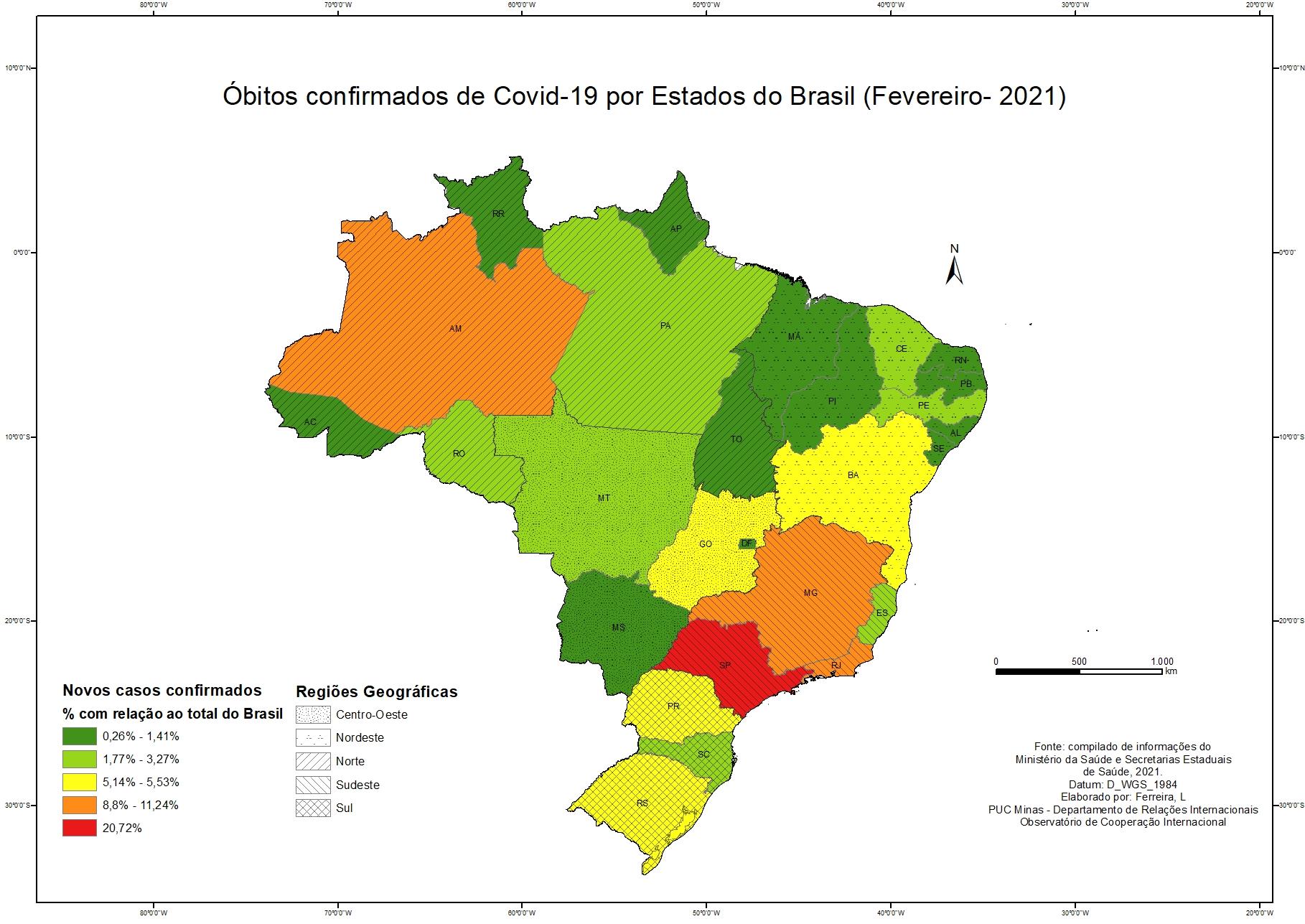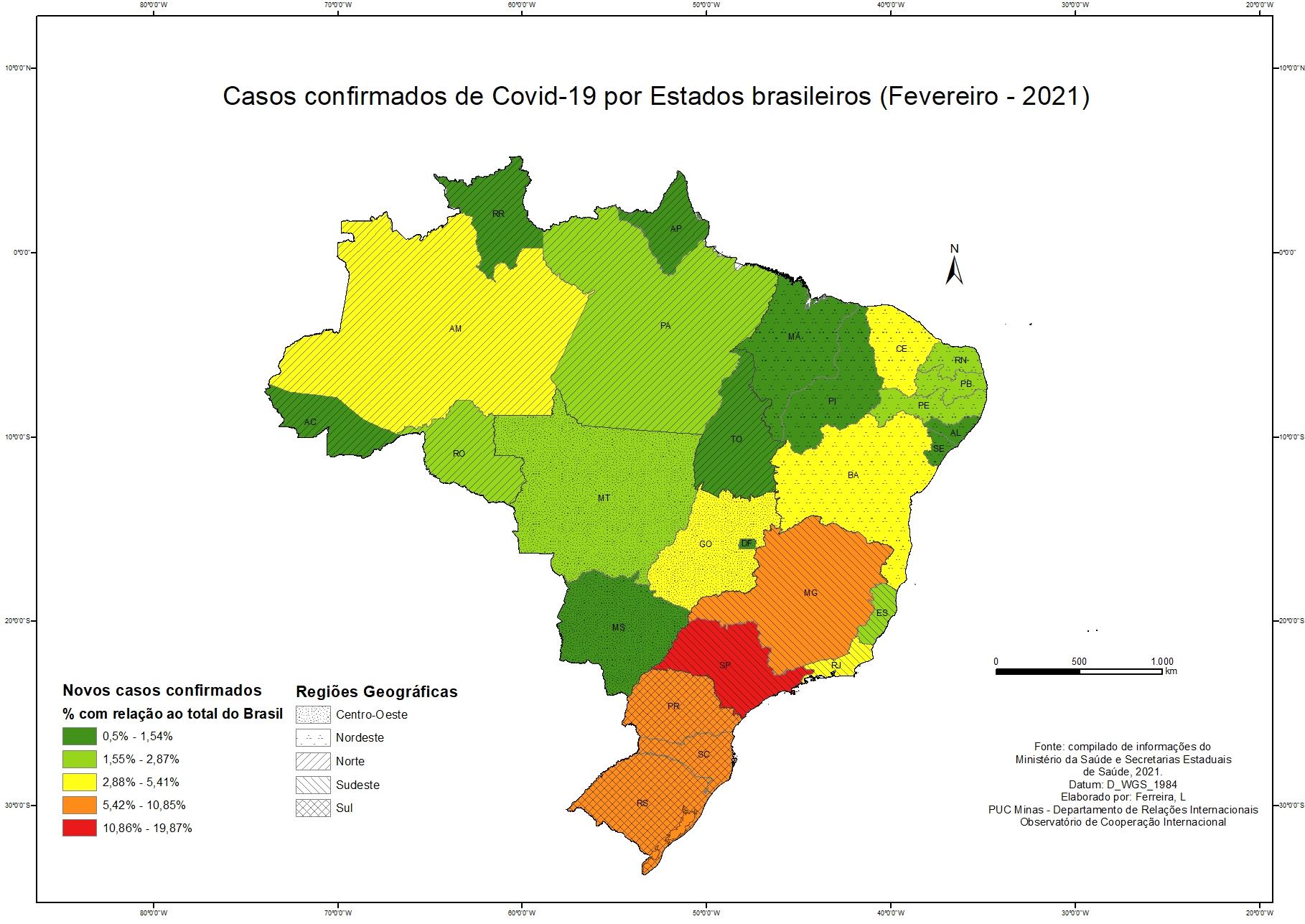 Casos Confirmados por Covid 19 por conjunto geopolítico - Fevereiro de 2021
