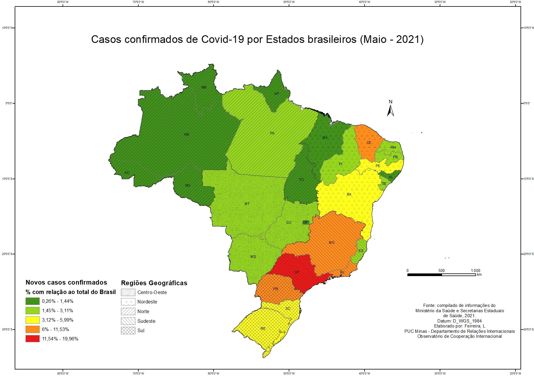 Casos confirmados de Covid-19 por Estados brasileiros (Maio - 2021)
