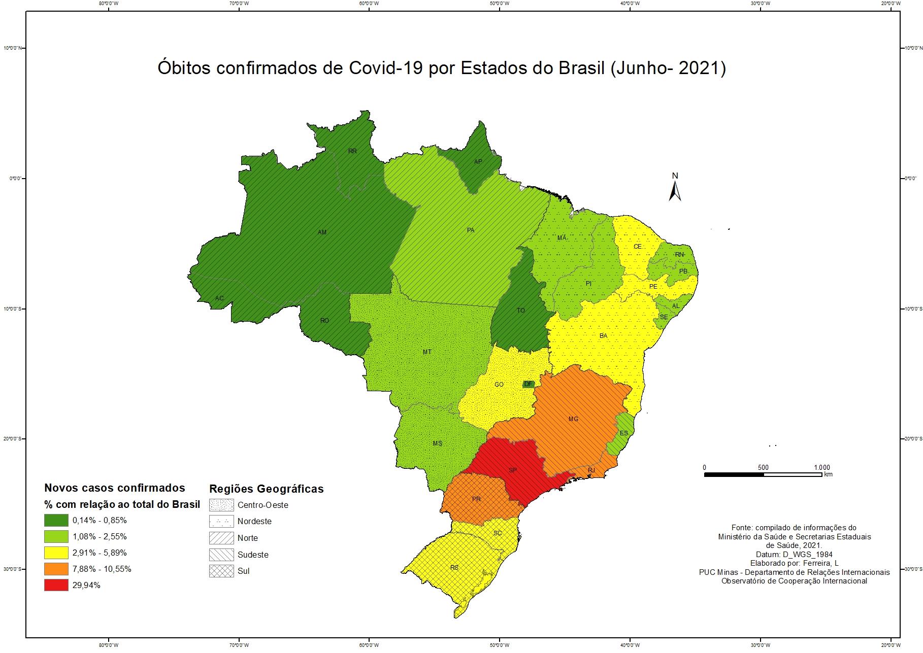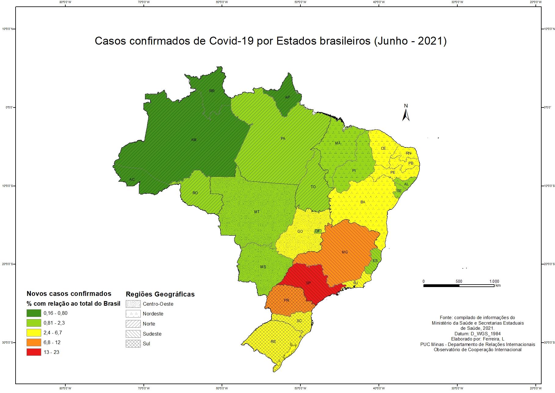 Casos Confirmados por Covid 19 por conjunto geopolítico - Junho de 2021