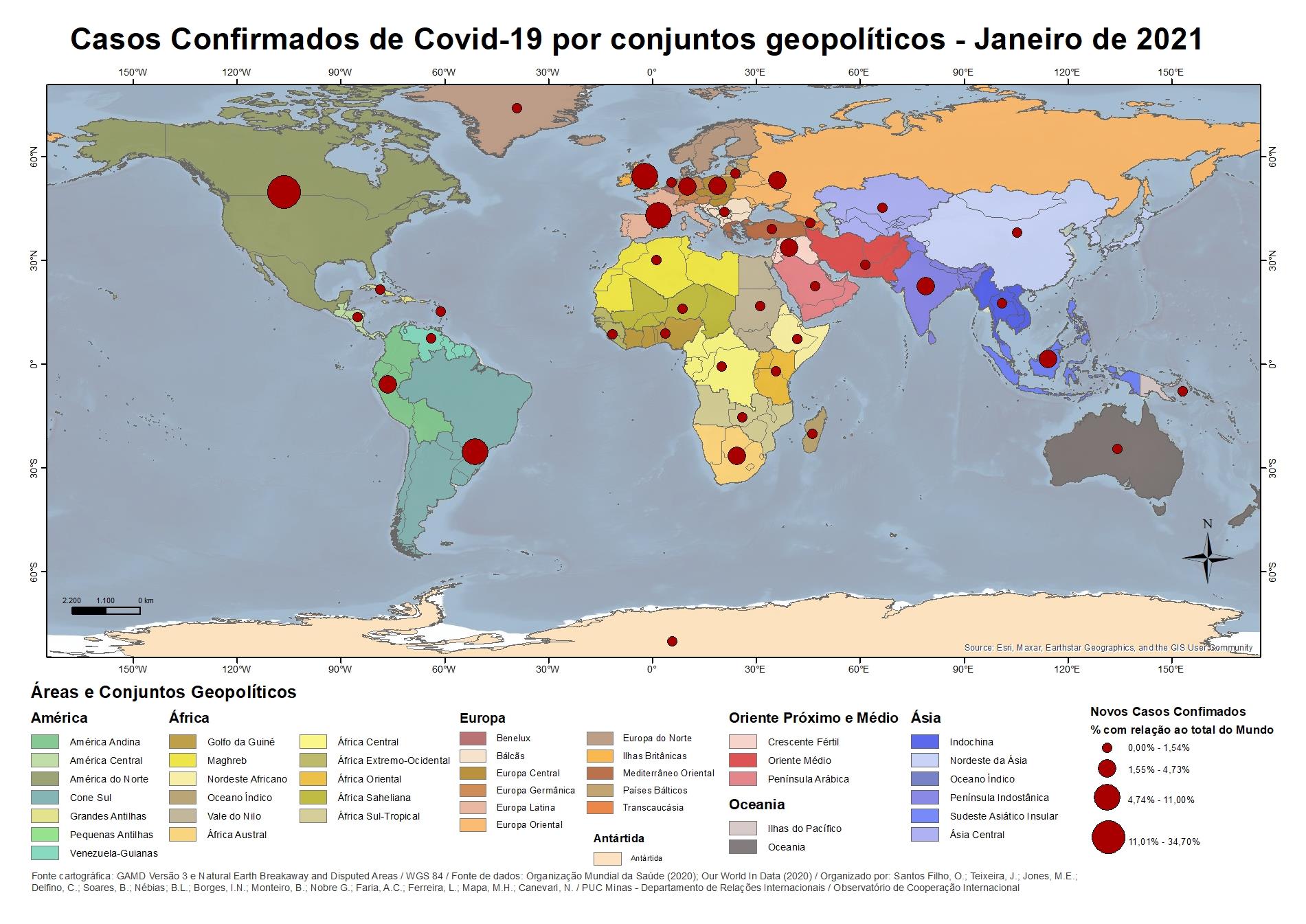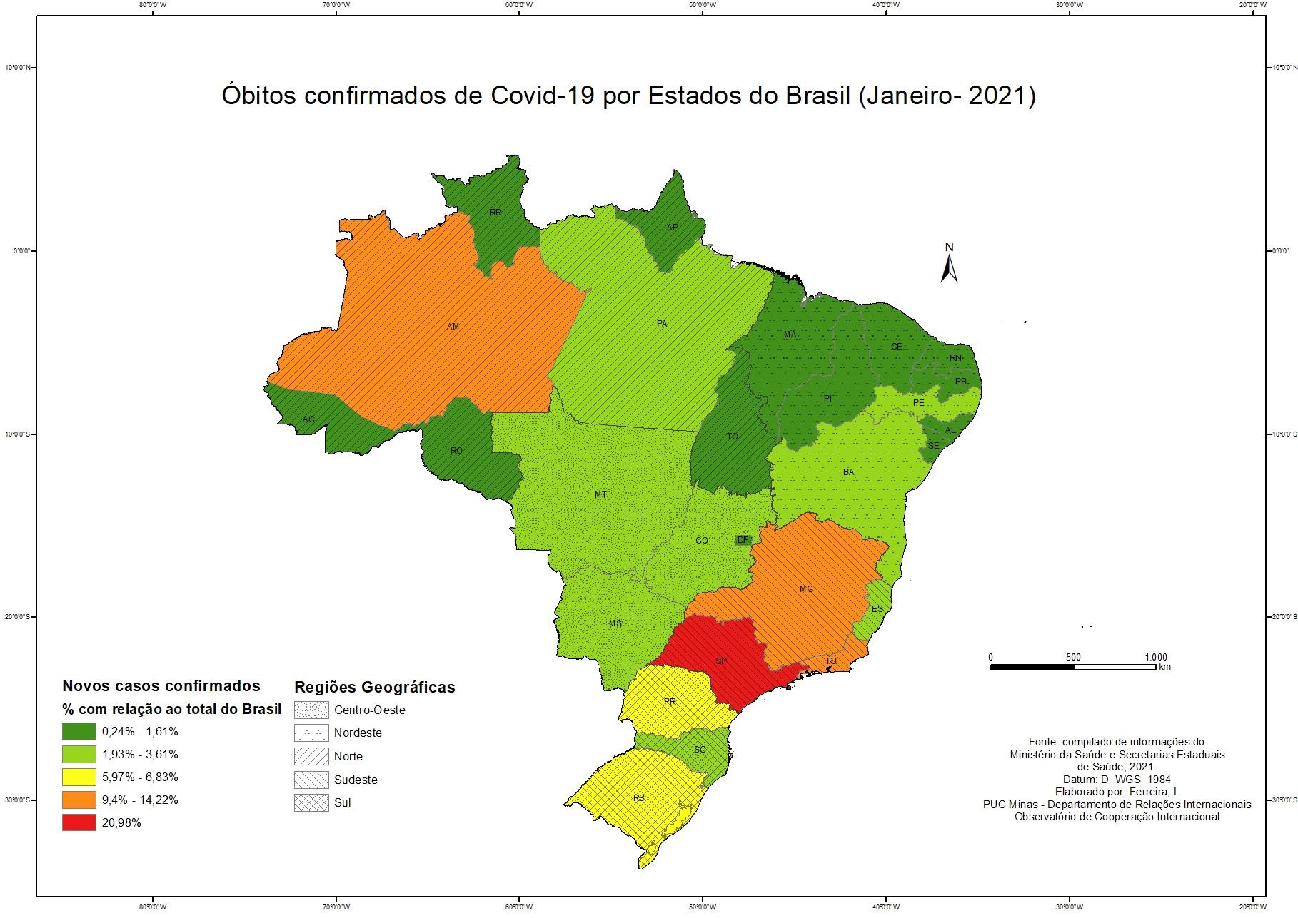Casos Confirmados por Covid 19 por conjunto geopolítico - Janeiro de 2021