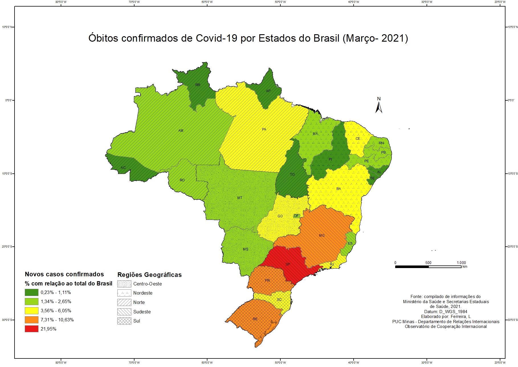 Casos Confirmados por Covid 19 por conjunto geopolítico - Março de 2021