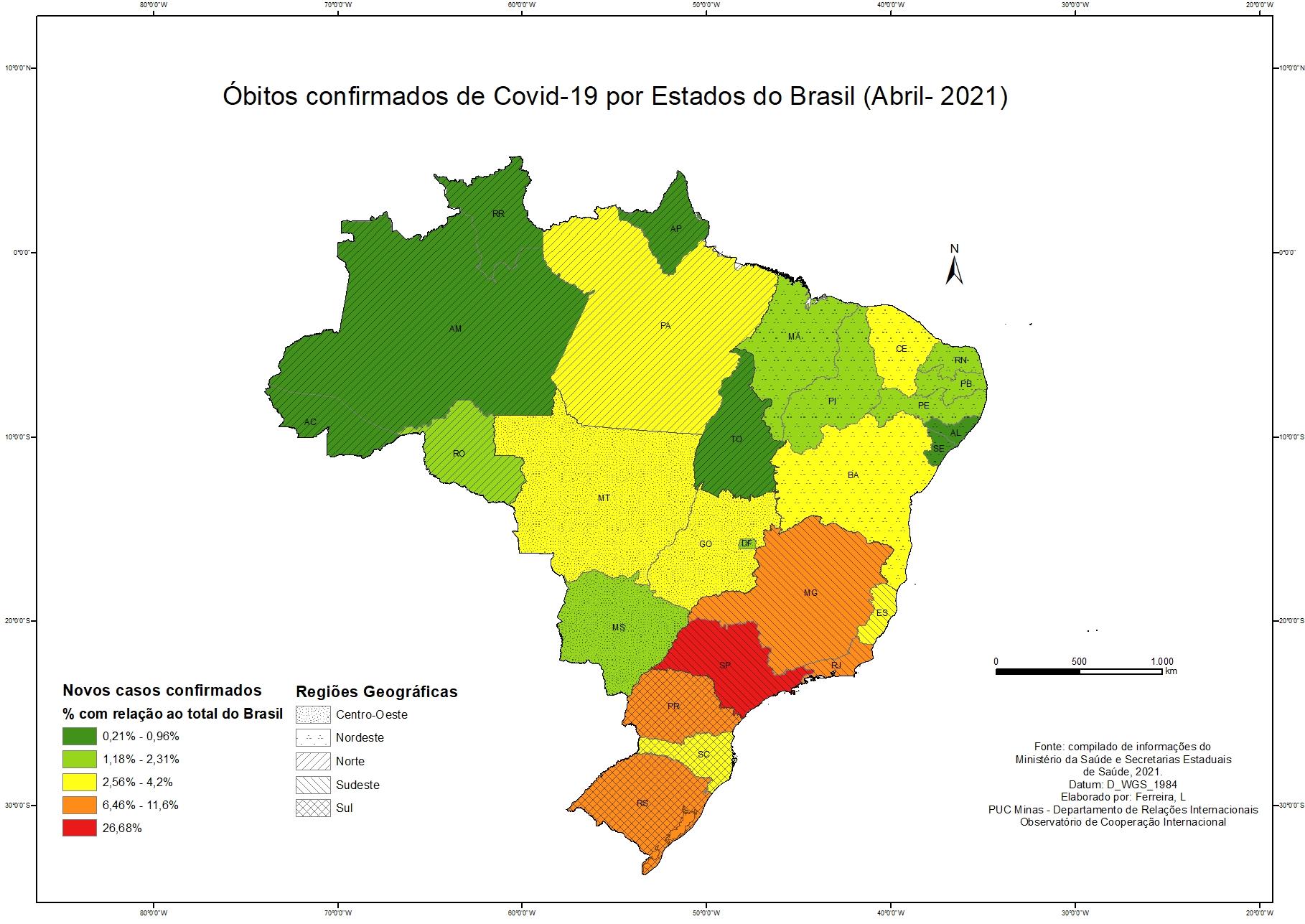 Casos confirmados de Covid-19 por Estados brasileiros (Abril - 2021)