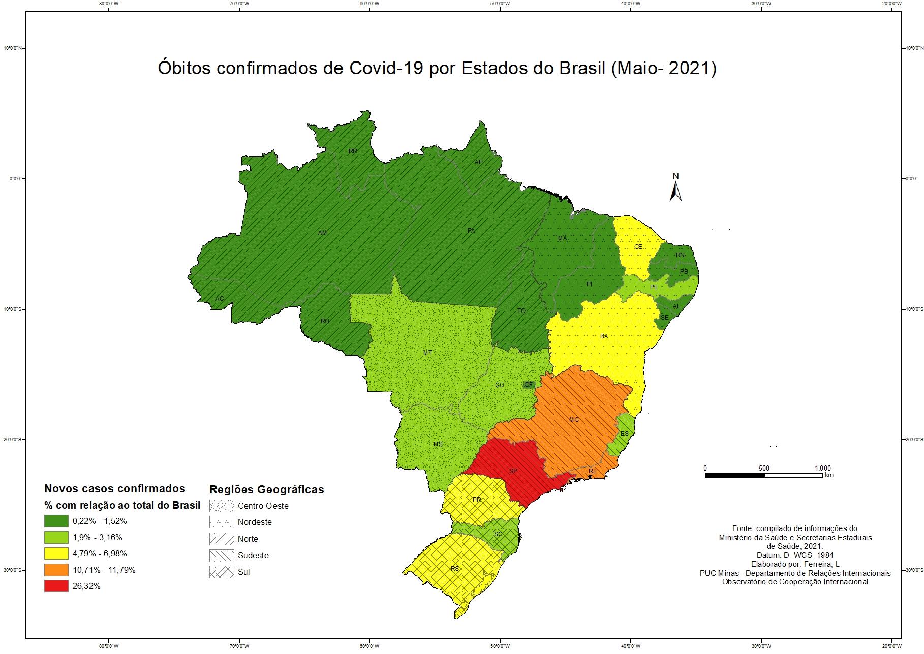 Casos Confirmados por Covid 19 por conjunto geopolítico - Maio de 2021