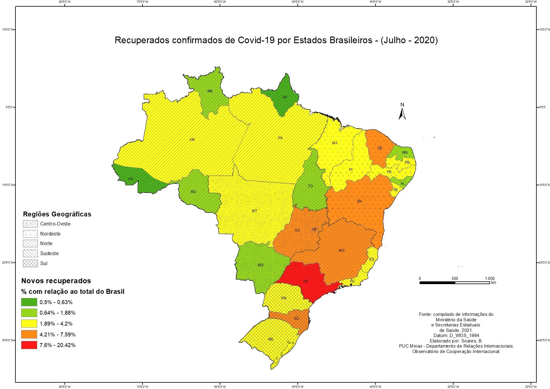 Casos recuperados de Covid-19 por conjuntos geopolíticos - Julho 2020
