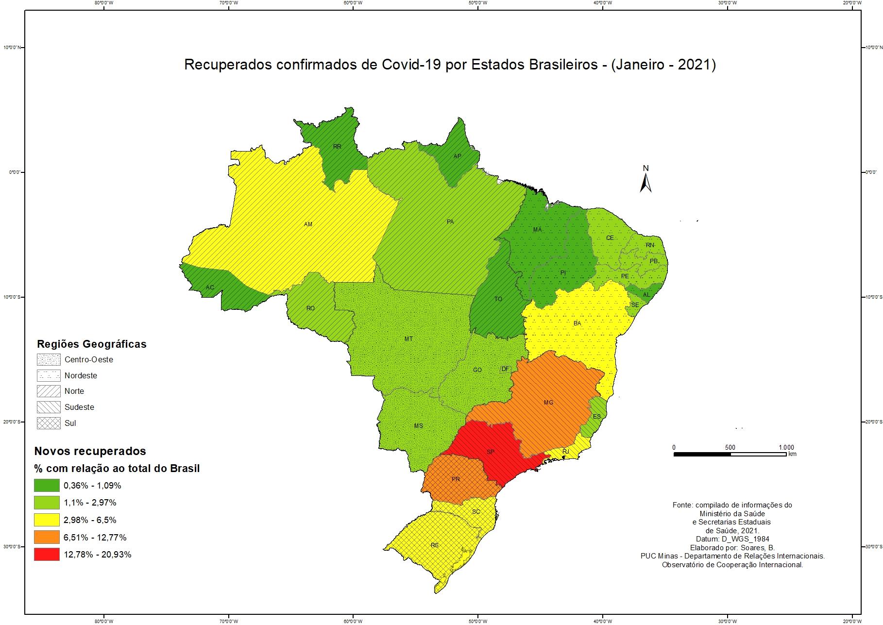 Casos recuperados de Covid-19 por conjuntos geopolíticos - Janeiro 2021