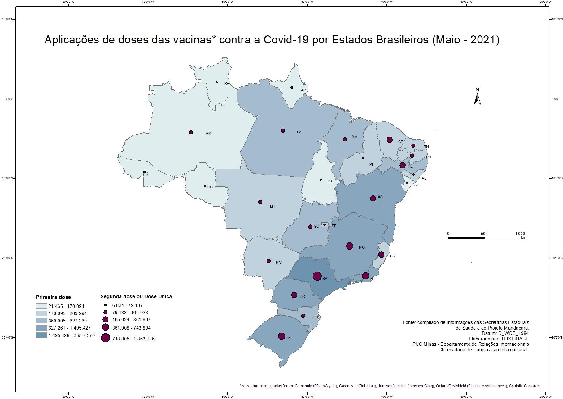 Aplicações de doses da vacina contra a Covid-19 por Estados Brasileiros (Maio - 2021)