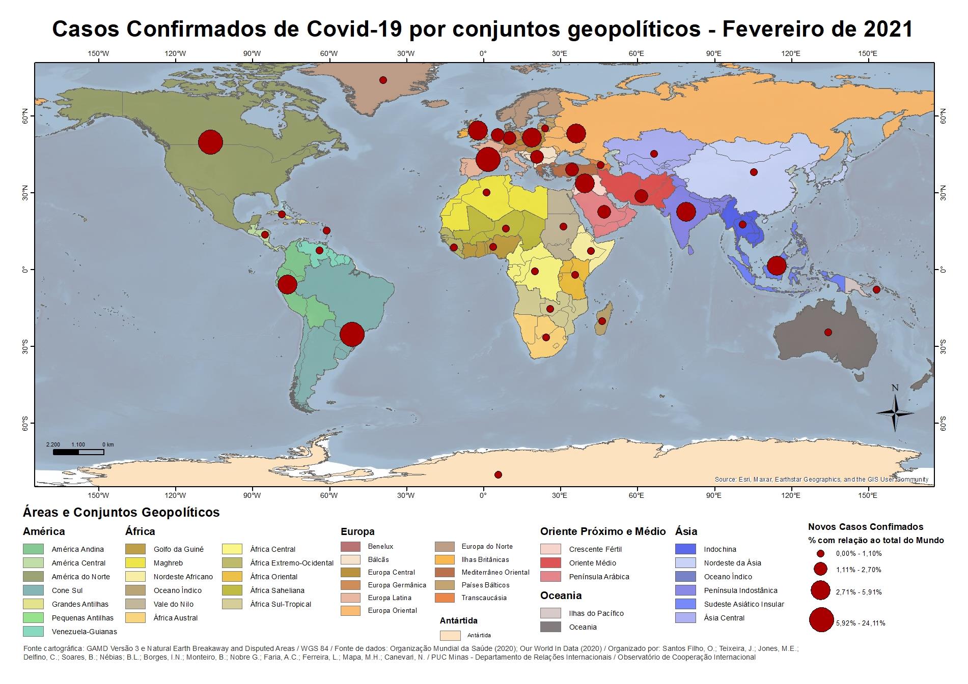Casos Confirmados por Covid 19 por conjunto geopolítico - Fevereiro de 2020