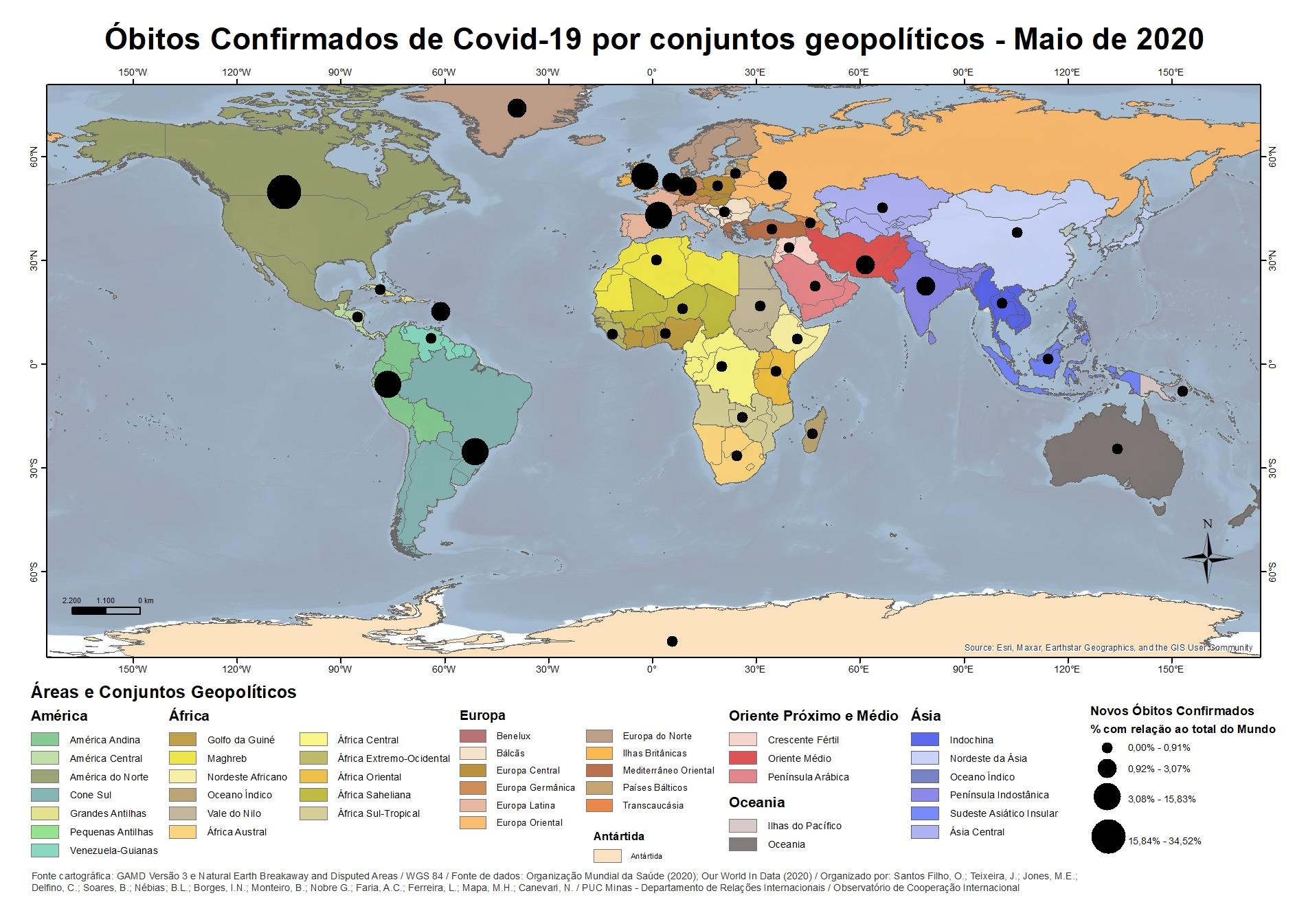 Óbitos confirmados de Covid-19 por conjuntos geopolíticos - Maio 2020