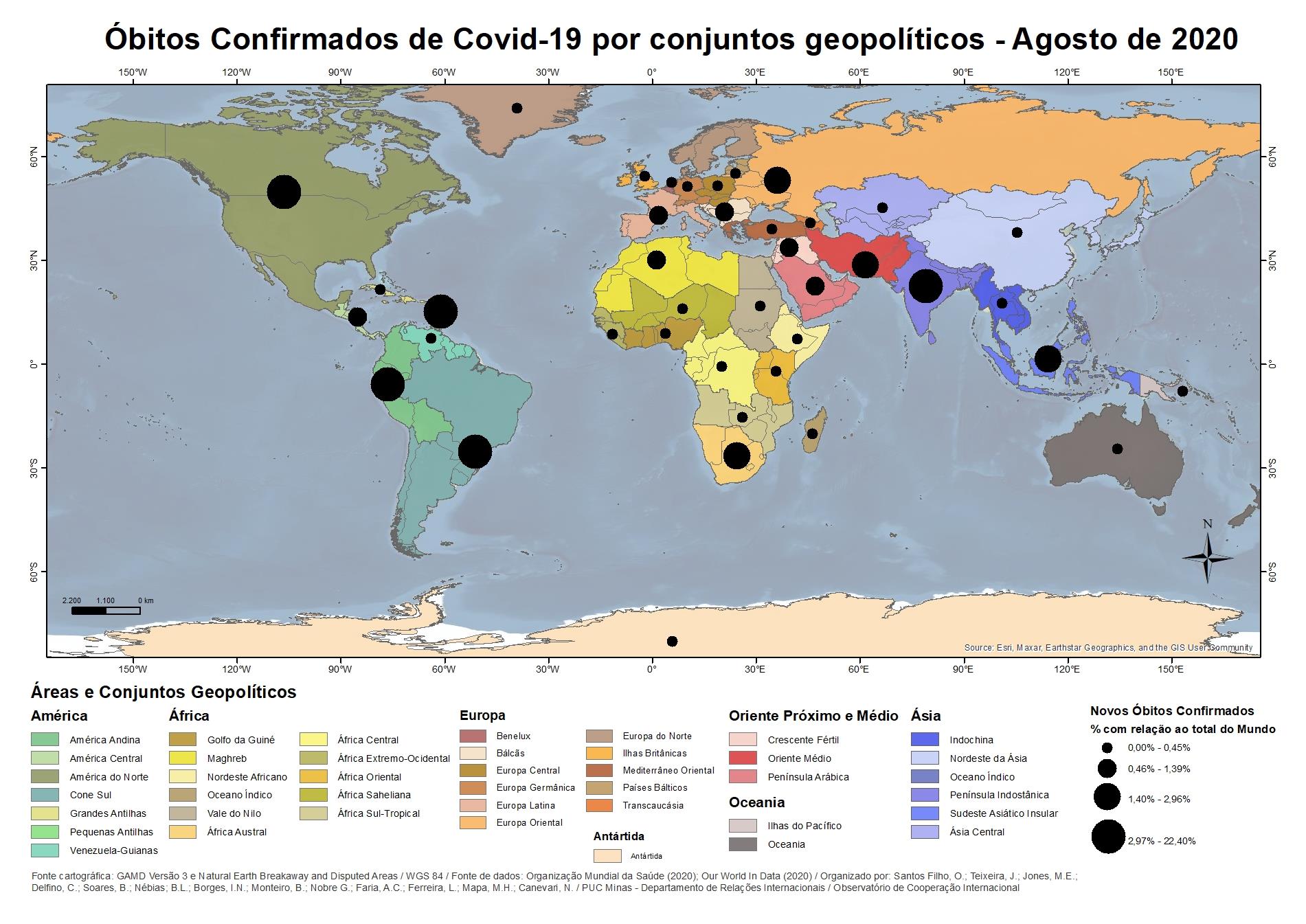 Óbitos confirmados de Covid-19 por conjuntos geopolíticos - Agosto 2020