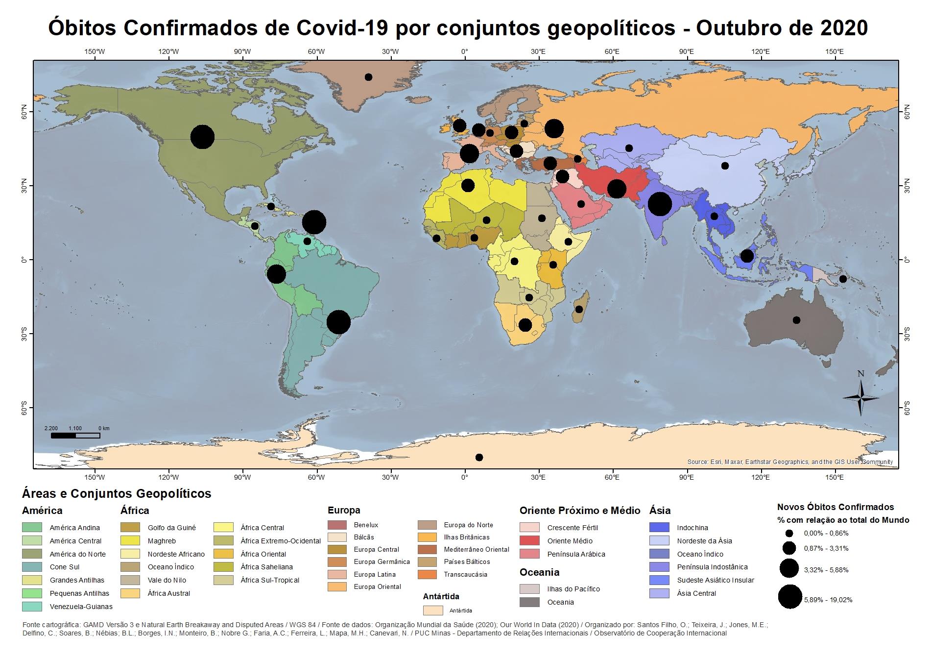 Óbitos confirmados de Covid-19 por conjuntos geopolíticos - Outubro 2020