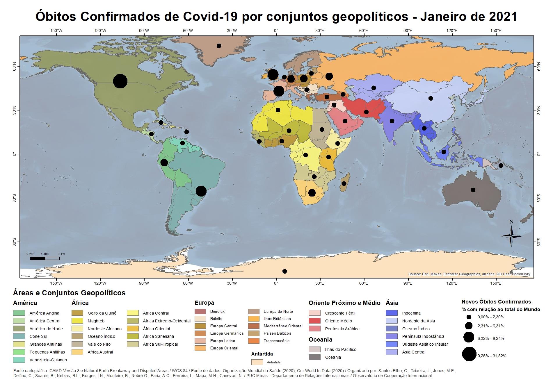 Óbitos confirmados de Covid-19 por conjuntos geopolíticos - Janeiro 2021