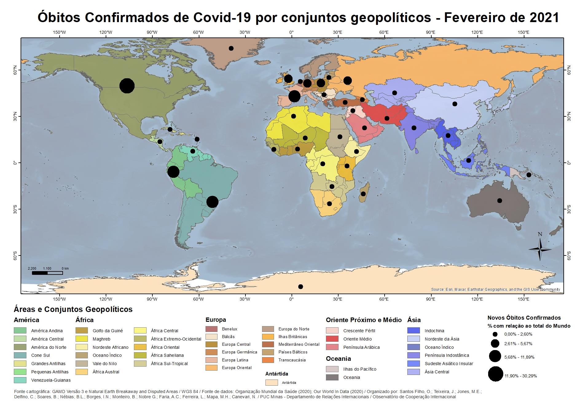 Óbitos confirmados de Covid-19 por conjuntos geopolíticos - Fevereiro 2021