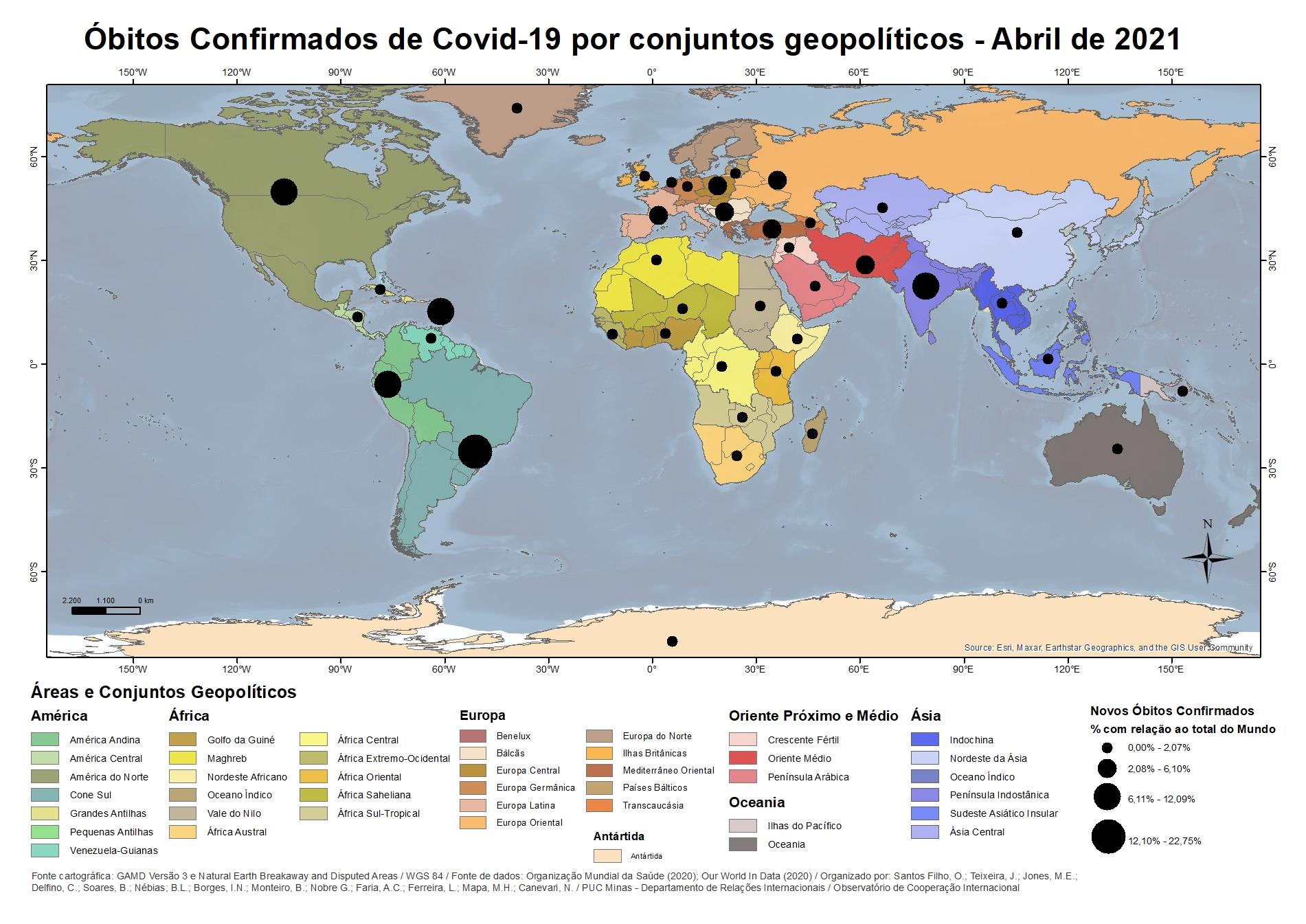Óbitos confirmados de Covid-19 por conjuntos geopolíticos - Abril 2021