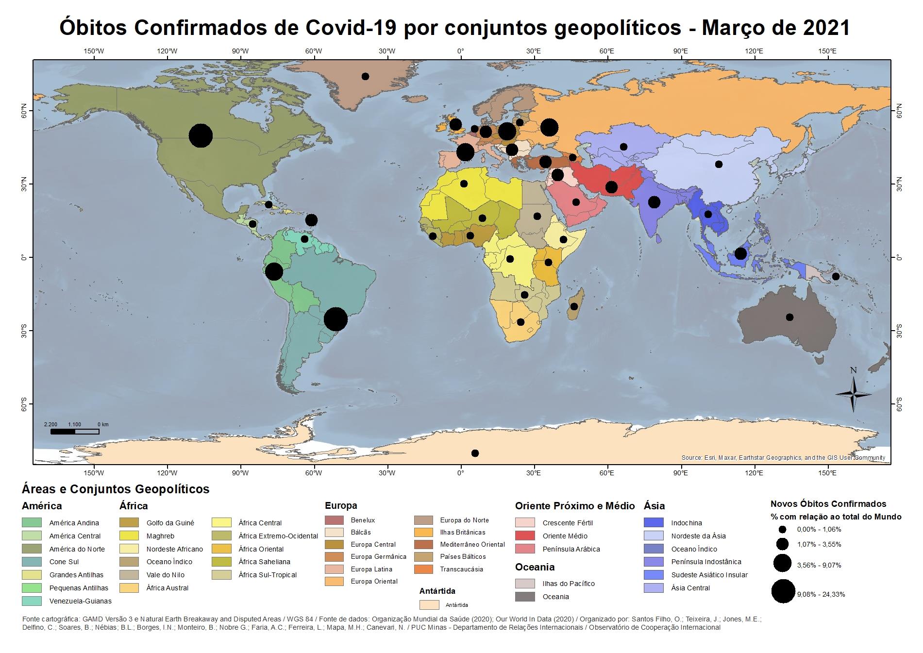 Óbitos confirmados de Covid-19 por conjuntos geopolíticos - Março 2020