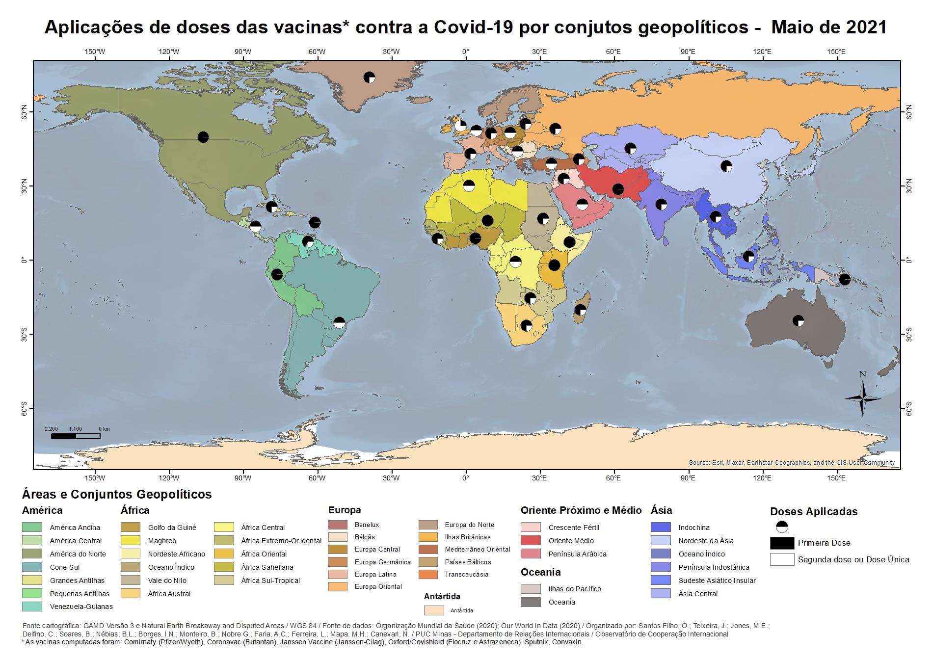 Aplicações de doses das vacinas* contra a Covid-19 por conjuntos geopolíticos - Maio 2021