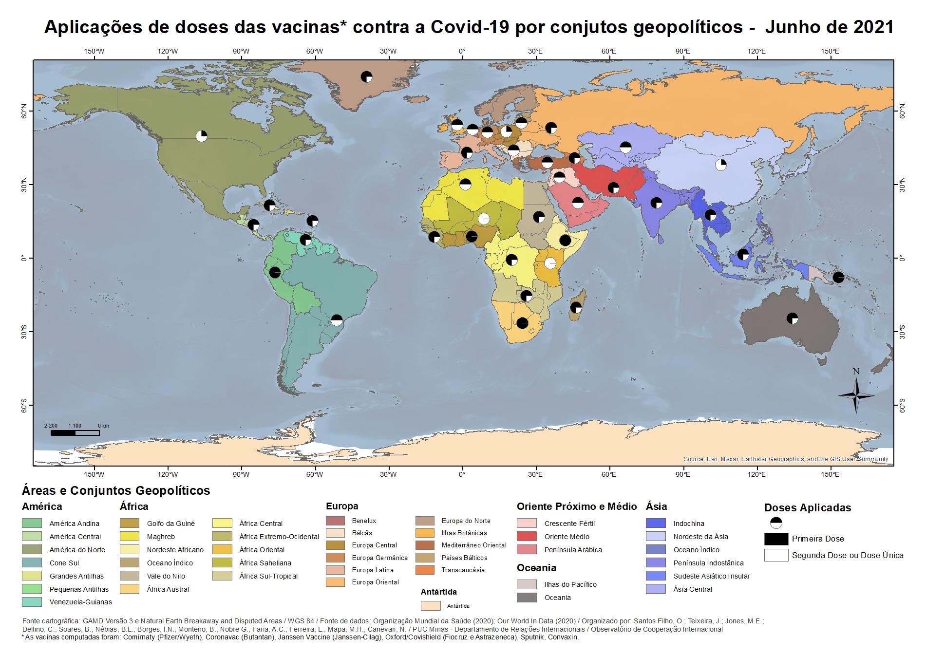 Aplicações de doses das vacinas* contra a Covid-19 por conjuntos geopolíticos - Junho 2021