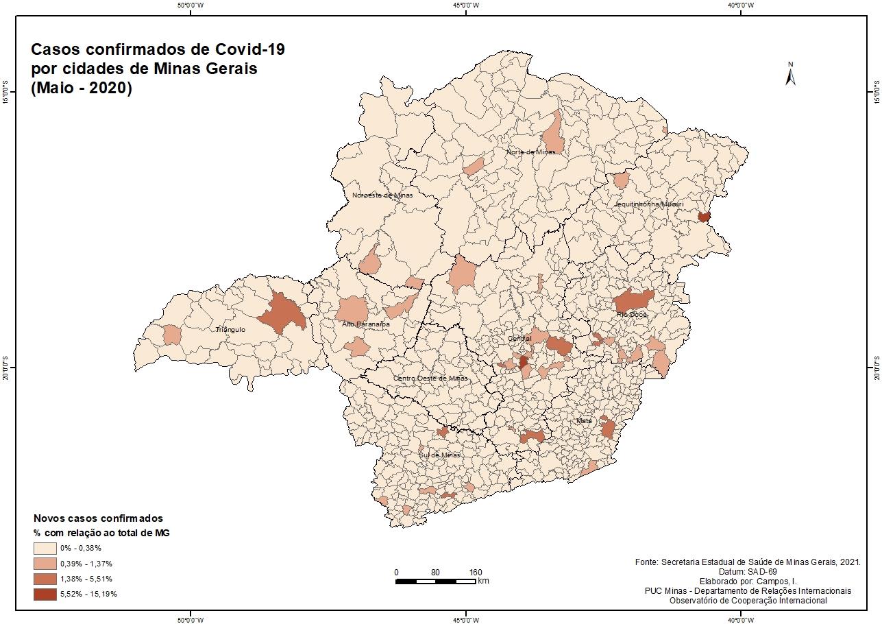Casos Confirmados de Covid-19 por cidades de Minas Gerais (Maio - 2020)