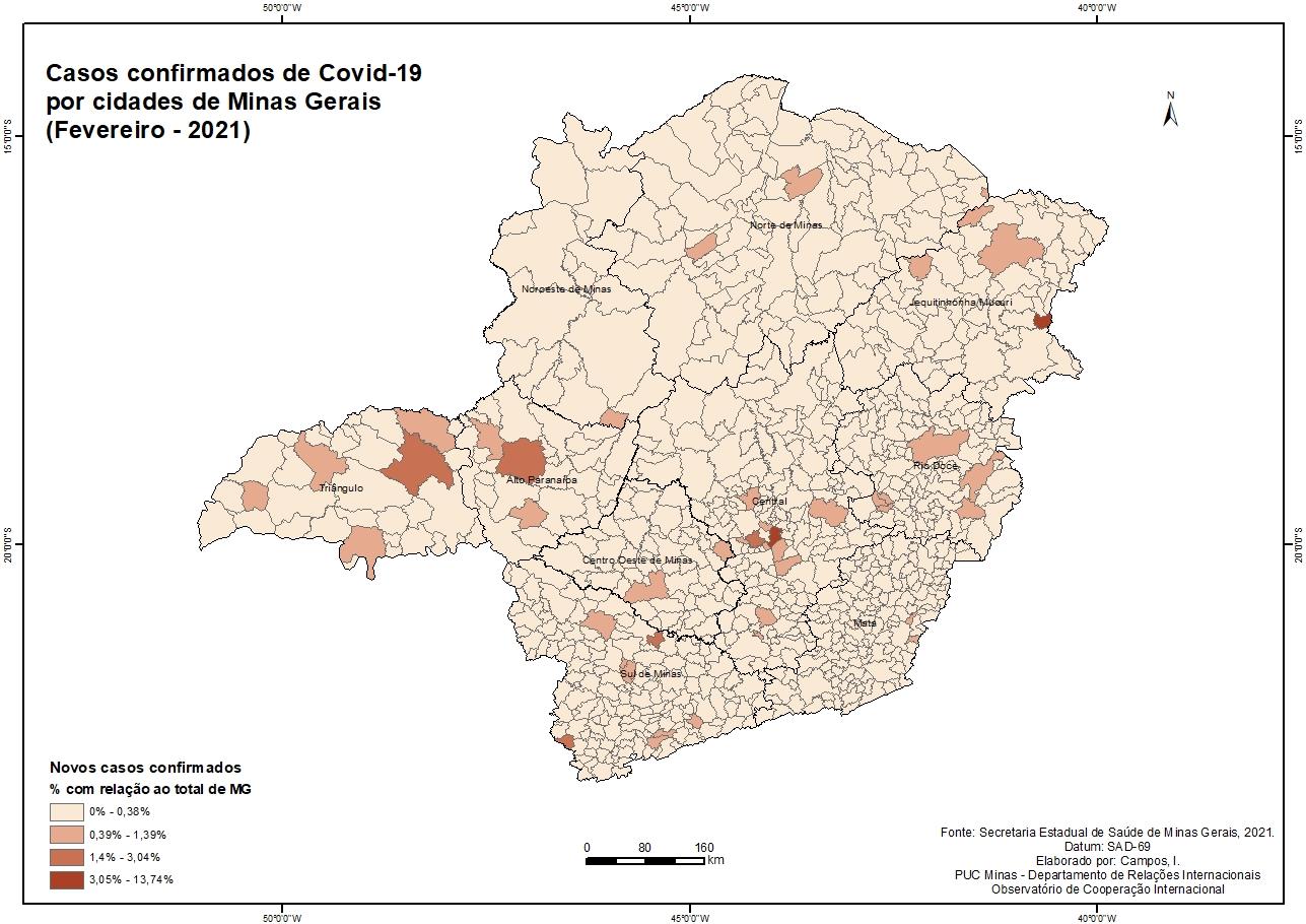 Casos Confirmados de Covid-19 por cidades de Minas Gerais (Fevereiro - 2021)
