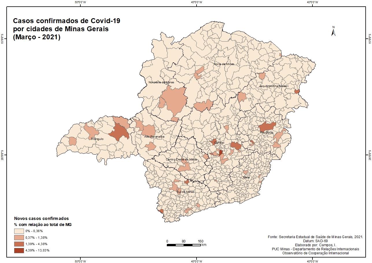 Casos Confirmados de Covid-19 por cidades de Minas Gerais (Março - 2021)